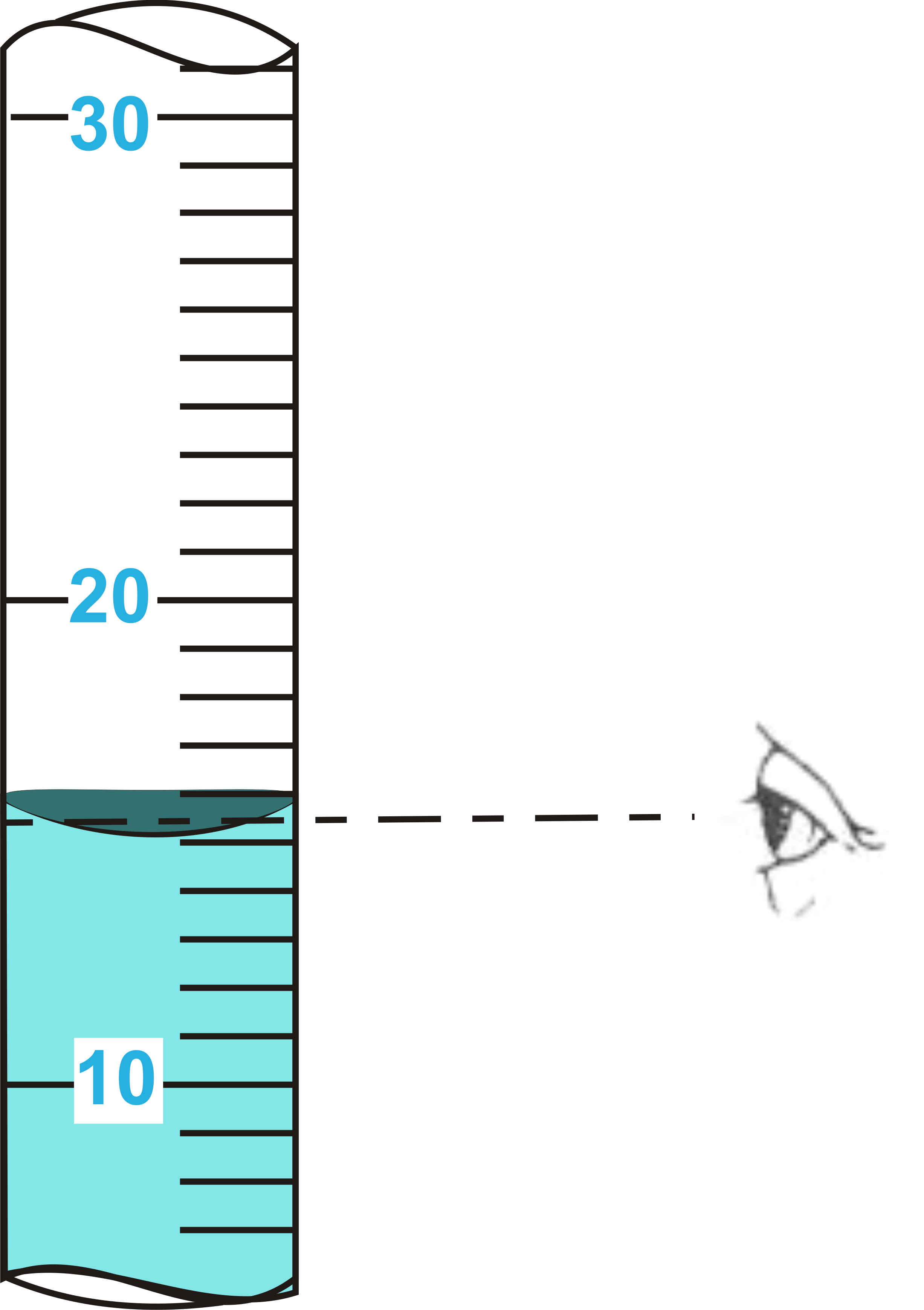 Hacmi doğru ölçmek için mezürü göz hizasında bir yüksekliğe koymak gerekir. Sıvının yüzeyde aldığı yay şeklinin alt kısmının, alınmak istenilen hacim çizgisinin üstüne denk gelmesi gerekmektedir.